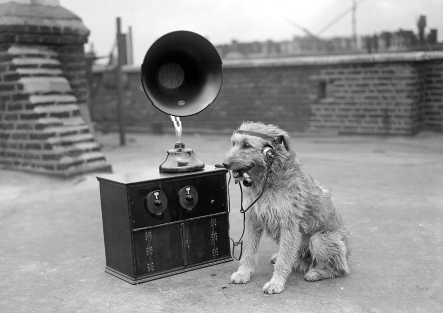 Read moreOriginal caption from April 29, 1931: "'Rinty' at the Radio Station. All alert, Rin Tin Tin, famous canine of the films, awaits his cue to go on the air. Dramatized stories in which he is the central figure are broadcast from the NBC studios in Chicago each Thursday night. Movie cameras and microphones are all the same to him. They're serious and he's always ready for a feed after a strenuous rehearsal and show." #