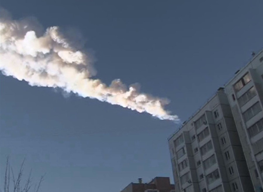 Read moreThe trail of a falling object is seen above a residential-apartment block in the Ural city of Chelyabinsk, Russia, in this still image taken from a video on February 15, 2013. A meteor streaked across the sky, exploding in an airburst, sending shock waves to the ground, shattering windows, and injuring hundreds below. #