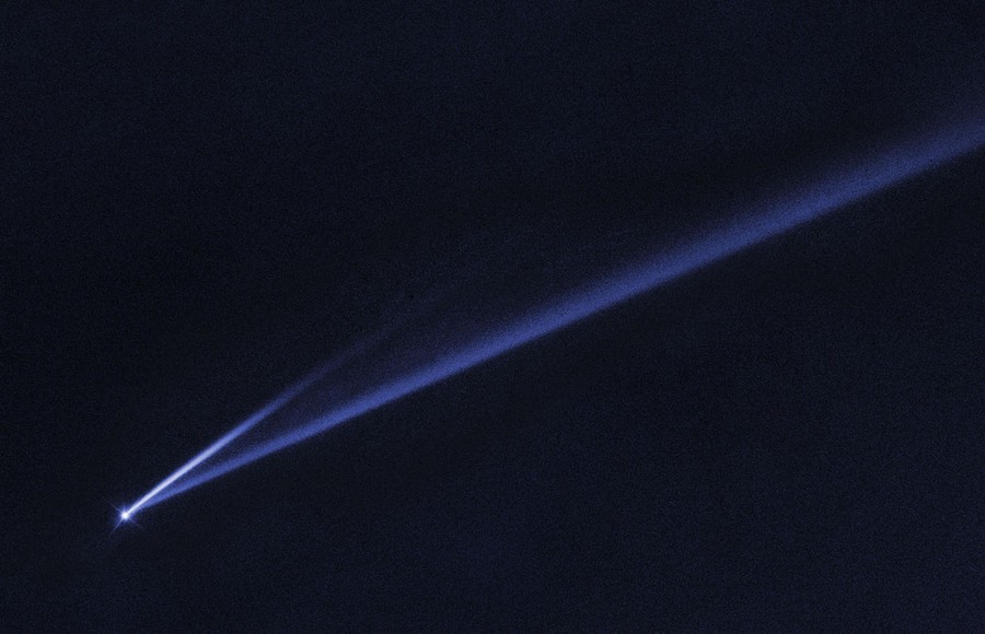 Read moreThis image made by the Hubble Space Telescope and made available by NASA on March 28, 2019, shows the asteroid 6478 Gault, which is gradually self-destructing. It is spinning so fast, dusty material ejected from the surface has formed two long, thin, cometlike tails. The longer tail stretches more than 800,000 kilometers (500,000 miles) and is roughly 4,800 kilometers (3,000 miles) wide. The streamers will eventually disperse into space. #