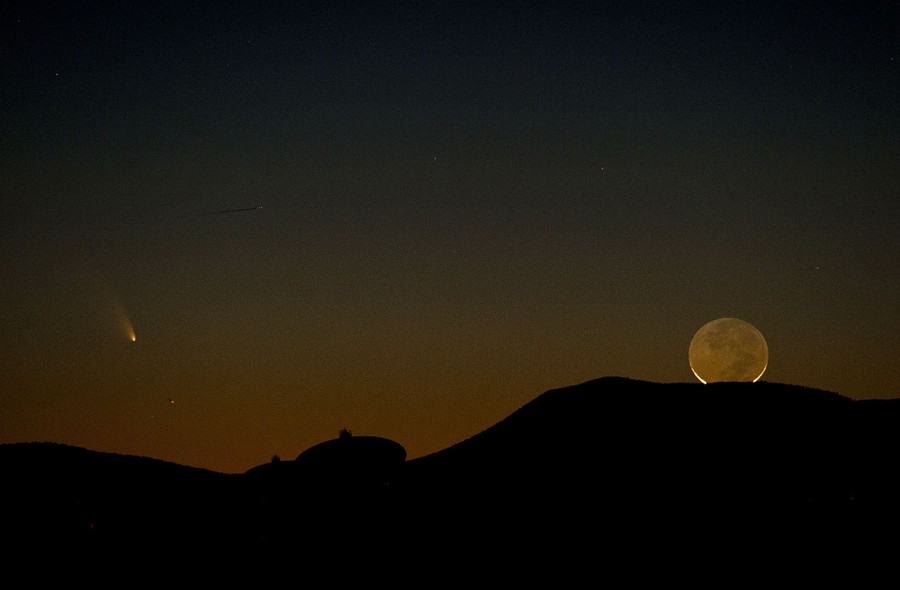 Read moreThe comet Pan-STARRS (left) is seen with a one-day-old crescent moon as both set over the Very Large Array radio-telescope antenna dishes near Magdalena, New Mexico, on March 12, 2013. The comet was discovered in June 2011 by the Panoramic Survey Telescope and Rapid Response System (Pan-STARRS) in Hawaii. #