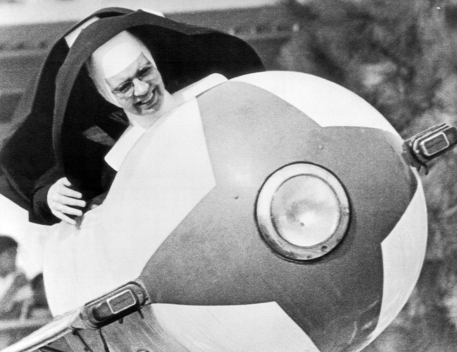 Read moreIn orbit are Sister Euphemia (front) and her co-pilot, Sister Michael James, as they ride the Tomorrowland rocket at Disneyland in November 1962. Catholic schools were out on a special holiday, and the park invited students and teachers in a day set aside as Catholic School Day. #