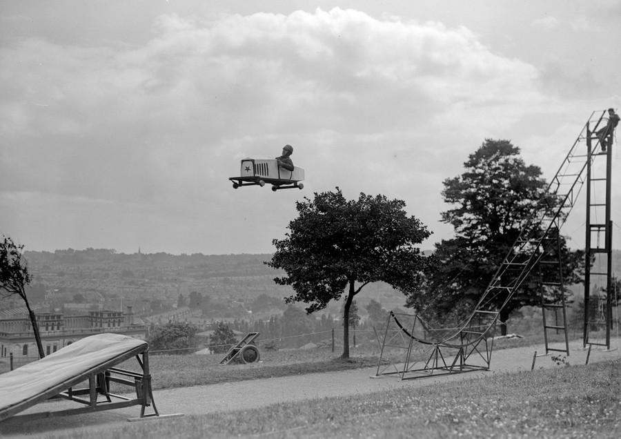 Read moreA stuntman takes off in a customized vehicle at Alexandra Palace in London on August 1, 1930. A closer view of the stuntman in midair can be seen here. #