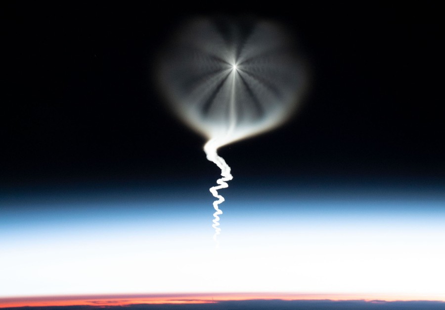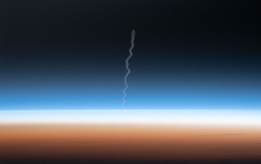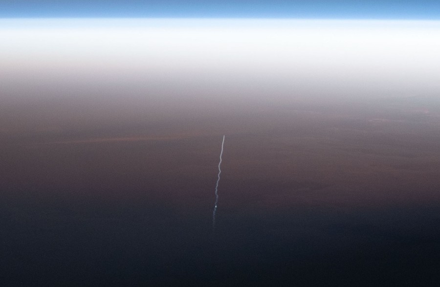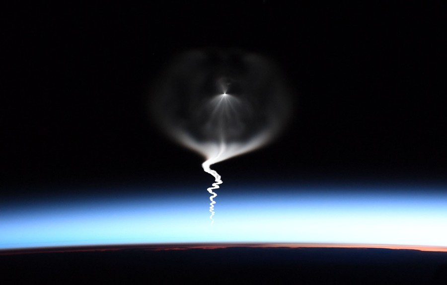 Read moreThis image was made by the astronaut Christina Koch, who described it saying: "What it looks like from the space station when your best friend achieves her lifelong dream to go to space. Caught the second stage in progress! We can’t wait to welcome you on board, crew of Soyuz 61!" #