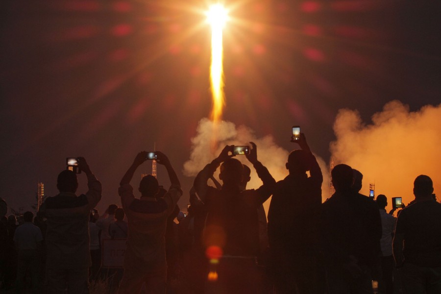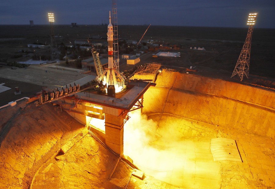 The Soyuz MS-15 Launch, Seen From Above and Below