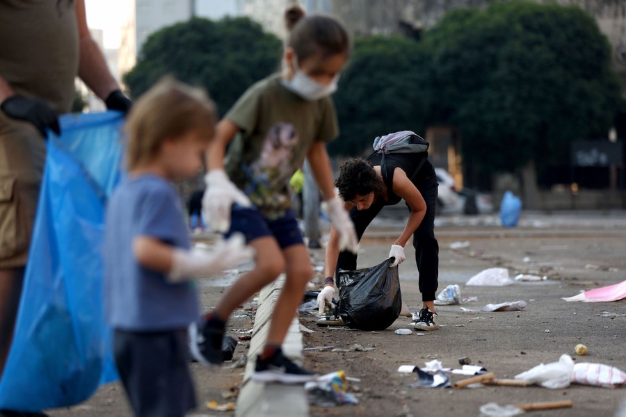 Read moreChildren help Lebanese members of a civil-society group clear rubbish on a street in Beirut's downtown district, following a night of protests against tax increases and official corruption, on October 21, 2019. #