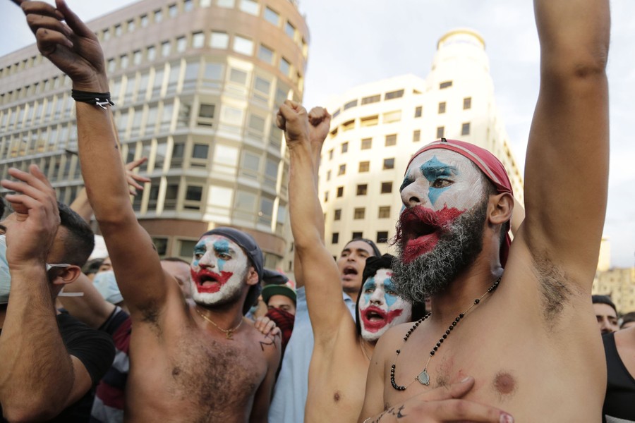 Read moreA Lebanese demonstrator—Cynthia Aboujaoude, her face painted as the DC comic book and film character the Joker, but using the colors of Lebanon's flag—takes part in a protest in Beirut's Martyr's Square on October 19, 2019. #