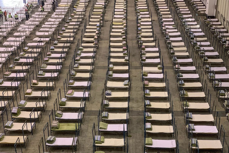 As authorities and health workers try to halt the spread of the novel coronavirus (2019-nCoV) outbreak in China, travel restrictions and quarantine measures have left many streets, parks, and shopping centers essentially deserted in cities across China. More than 20,500 cases have been reported so far in mainland China, and the World Health Organization recently declared a global public health emergency. Quickly-built hospitals are starting to take in patients in Wuhan, and other public buildings are being converted into temporary hospitals with thousands of beds set up for people with mild symptoms. Below, recent scenes from Wuhan, Shanghai, Beijing, and other virus-affected areas.
