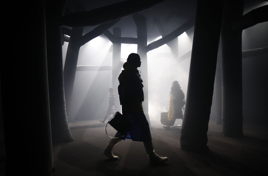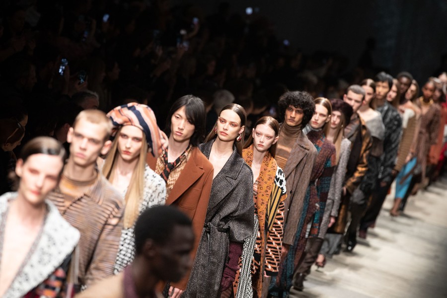 A collection of photographs from Milan Fashion Week Fall/Winter 2020/21, with runway shows put on by Versace, Gucci, Moschino, Philipp Plein, Moncler, and many more