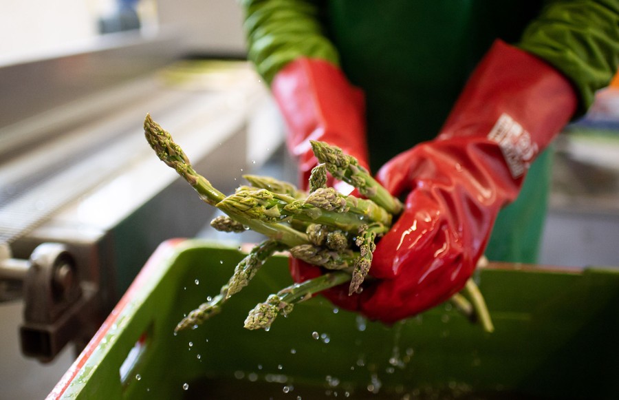 Read moreLocals help wash and sort asparagus at a farm during the coronavirus crisis on April 9, 2020, near Tettnang, Germany. Because of travel restrictions, many farms do not have enough workers and have appealed to locals, among them students, to help during this year's harvest season. #