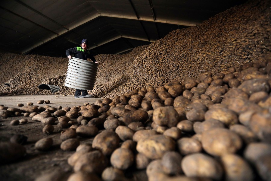 Read moreA farmer is pictured amid a large stock of potatoes that he can't sell to restaurants or catering services, as they are closed because of the coronavirus outbreak, at his property in Purmer, Netherlands, on April 3, 2020. #