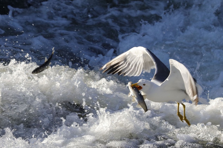Read moreSeagulls hunt for pearl mullets, a fish species living in Lake Van, on June 2, 2020. Every year during their spawning season, from April 15 to July 15, the pearl mullets move upstream, as the salty water of the lake does not allow them to reproduce. #