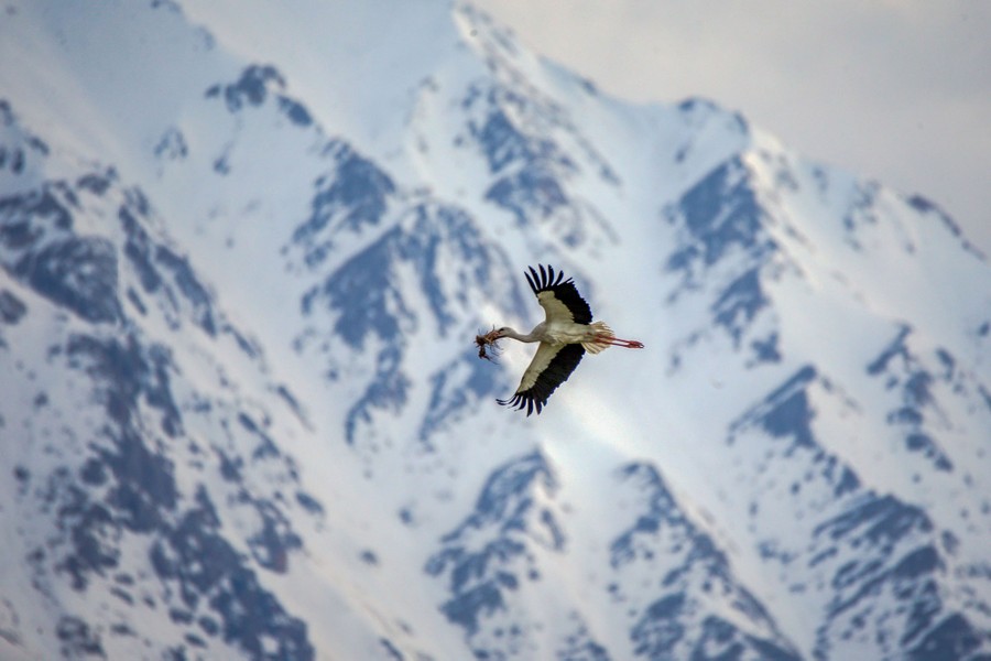 Read moreA stork carries branches to build a nest in Van on May 5, 2020. Storks arrive in Van around spring, after their winter migration, and begin to make their nests then. #