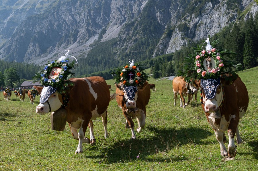 Read moreCows decorated with bells and flowers leave their summer pastures during the annual ceremonial Almabtrieb ("cattle drive"), on September 18, 2020, at Gramai-Alm in Tyrol's Karwendel Alpine Nature Park near Pertisau, Austria. #