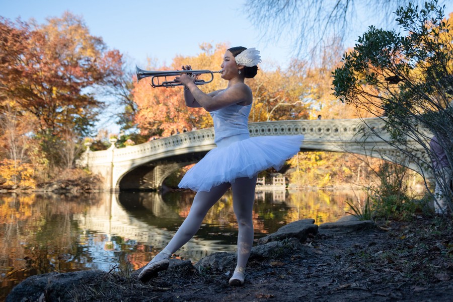 Read moreSeira Soraya, a dancer and musician, plays the trumpet near Bow Bridge in New York's Central Park on November 9, 2020. Soraya has been out of work due to the coronavirus pandemic and is using this time to work on a personal project. #