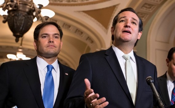 GOP strategist Rick Wilson calls this "the Highlander theory," after the '90s TV show about the Scottish warrior who needs to behead other immortals because there can be only one. Ted Cruz became The One by eclipsing Rubio, who had ascended only a few months earlier. "Ted Cruz and Marco Rubio made similar mistakes in opposite directions," says Ben Domenech, a senior fellow at the Heartland Institute and the publisher of The Federalist. "Rubio obviously tacked toward the center with a push for coming together on immigration policy, and that did damage to his standing with the conservative base. Cruz on the other hand tacked to the right in a way that helped his standing with base but hurt [his] standing with centrists who had been previously open to the idea of him."