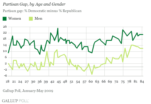 As the old become older, they become more female. As they become more female, they become more supportive of government’s social-welfare role—and thus more strongly Democratic.