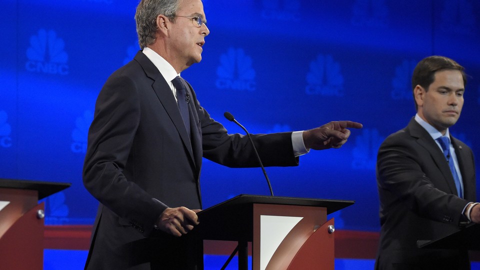 Bush took on Rubio after the debate moderators brought up his frequent absence from Senate votes. Florida’s Sun Sentinel ran an editorial Tuesday calling on Rubio to resign his Senate seat and forgo his $174,000 annual paycheck if he was not going to bother showing up for votes. According to The New York Times, Rubio has missed roughly a third of his votes this year. And a super PAC backing Bush has also started a Twitter campaign—@IsMarcoWorking—to attack Rubio and track his missed votes, which it now claims is at 176.
