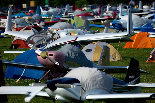 A few of the thousands of owner-flown small aircraft that gather each summer for the Oshkosh AirVenture convention (Experimental Aircraft Association)