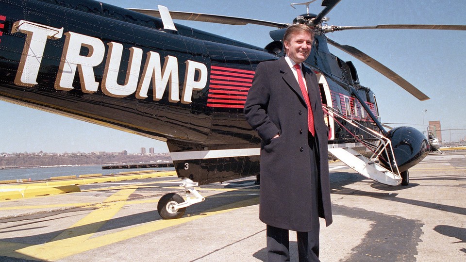 Donald Trump poses in front of a helicopter at New York Port Authority's West 30 Street Heliport on March 22, 1988. (Wilbur Funches / AP)