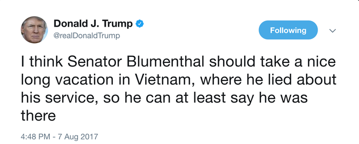 But for those who weren’t around, here’s a primer on why Donald Trump took yet another step into graceless and obnoxious territory by criticizing Richard Blumenthal, the Democratic senator from Connecticut, for embellishing or lying about his Vietnam-era military record.