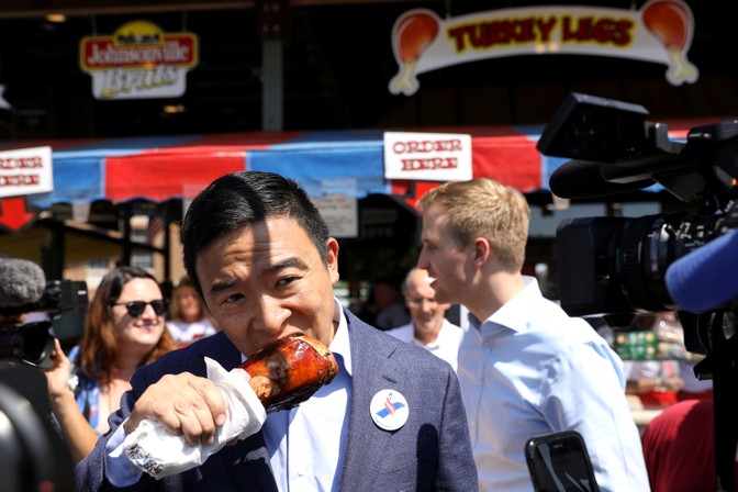 Andrew Yang eats a turkey leg. (Scott Morgan / Reuters)