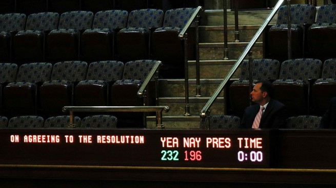 232–196. GOP defections: 0. Now the more public phase of the impeachment process is about to begin.