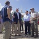 Seizing on President Obama’s absence, the Republican nominee surveys flood damage despite a warning from the state’s governor.