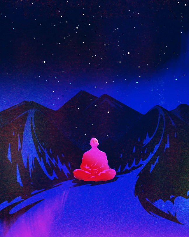 To “drop in,” Halifax explained, is to enter a state of being completely present in time and space, experiencing “the sense field”—the world as it appears to our senses prior to thought—without conceptualizing, and surrendering the sense of a separate self. The recipe was simpler (and much less appetizing) than I would have imagined: To transcend the self, force yourself to be alone with it long enough to get so bored and exhausted that you are happy to let it go.