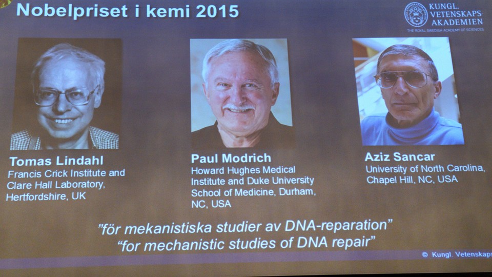 Tomas Lindahl, Paul Modrich, and Aziz Sancar are sharing this year’s prize in chemistry.