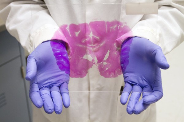 The complete atlas (the photograph above is of one thin slice of human brain tissue that was used in its construction) will be available for free at www.brain-map.org to be used as a resource for scientists. With more than 100 million data points, the existing atlas, which was built using two brains donated for research, is large -- but not complete. The team at the Allen Institute will add eight more brains to the collection by the end of next year.