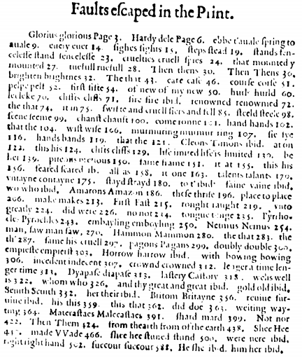 Here's the errata list from Edmund Spenser's "The Faerie Queen," an epic poem from 1590:
