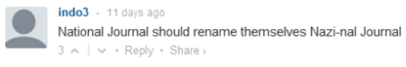 A couple of weeks ago, National Journal changed its comments policy, opting to eliminate comments on most stories as a way to stem the flood of abuse that appeared on the site. Naturally the comment-section reaction to that announcement helped reinforce the reason editors said comments had to go in the first place.
