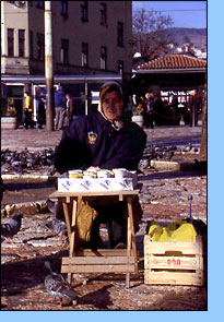 "But during four years of war no one came." Her hands were still, one lay in the other on her lap. "But I came. I couldn't stay in my house all day. I came here, sat with a thermos of coffee. Sometimes a soldier came, a Bosnian soldier. I sit with him, drink coffee with him. Then he goes. Fights in the hills, Sarajevo hills. Many not come back. You understand me."