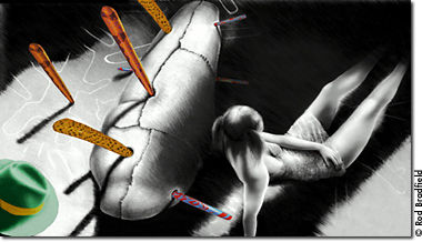 Next page: "The ancien régime of the visual..." Harvey Blume, a writer living in Cambridge, Massachusetts, is a frequent contributor to Atlantic Unbound. Images: Detail of Radial Entity (top), © 1999 by Dennis Miller; Mummy II, © 1997 by Rod Bradfield. Copyright © 1999 by The Atlantic Monthly Company. All rights reserved. |
