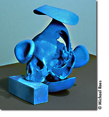 The RP sculptor Michael Rees avoids the representational route altogether, however much the firms whose resources he borrows might like him to crank out recognizable shapes for purposes of publicity. Rees, who sculpted for fifteen years before starting to work with RP five years ago, is aware both of RP's danger (its rendering traditional skills unnecessary) and its promise (that of democratizing sculpture). As he puts it, art, under the impact of the computer, "may be dying but also it may be stepping out of its intellectual ghetto." As in Ajna 3, Rees's works are biomorphic in the broadest sense, exploring fantastic and sometimes slightly monstrous anatomies, and then occasionally dissecting them. His sculptures are like stand-alone special effects, leaving the viewer to piece together in imagination the worlds of which the sculptures are a part.